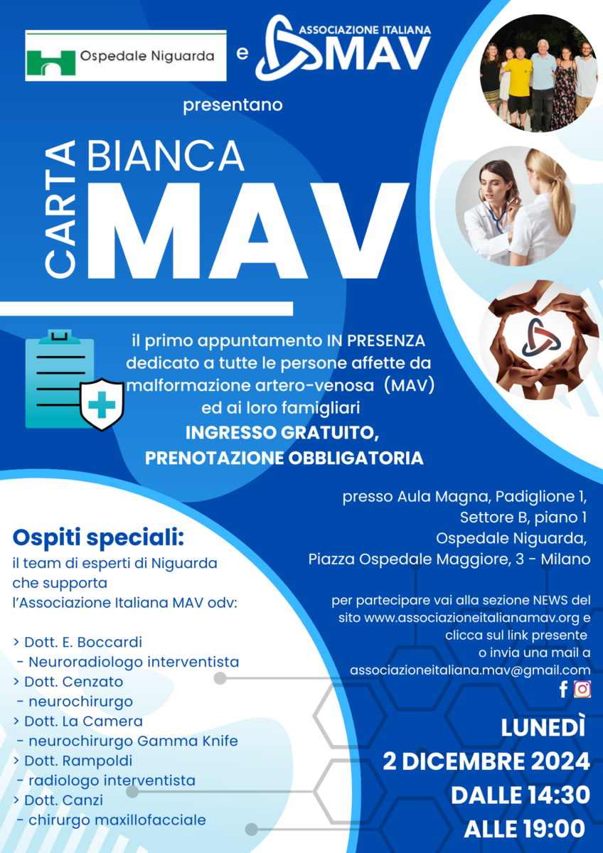 02/12/2024 L’Associazione Italiana MAV all’Ospedale Niguarda per il primo “Carta Bianca MAV LIVE”.